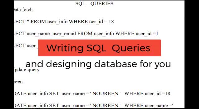 In this gig, I will help you design database for your business or website and write related queries on MySQL, MS ACCESS, Oracle, My SQL Server, PostGreSQL and MySQL WorkBench.